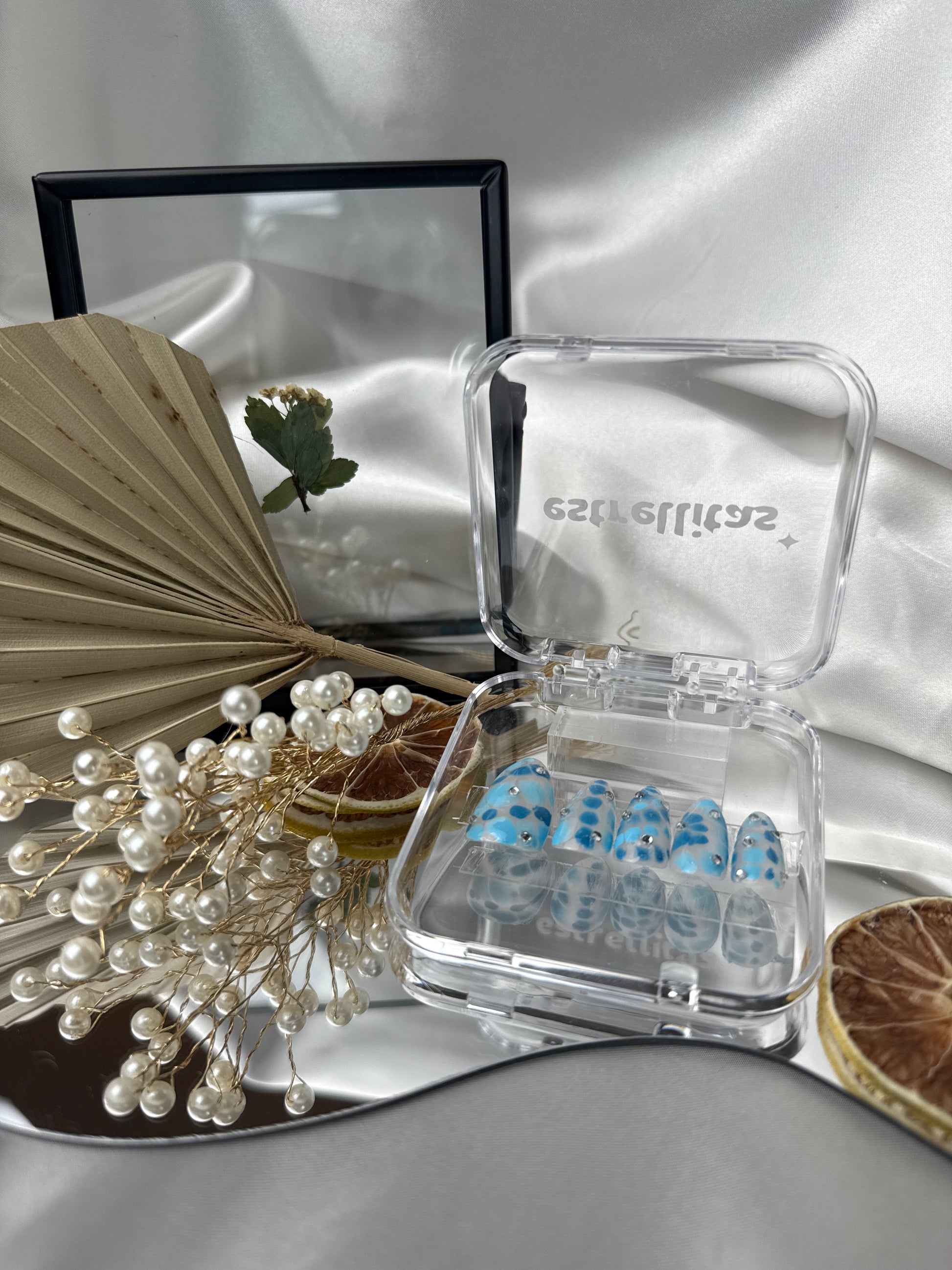 - 1 hand-painted, custom-fit nail set with a Free sizing kit on your first order